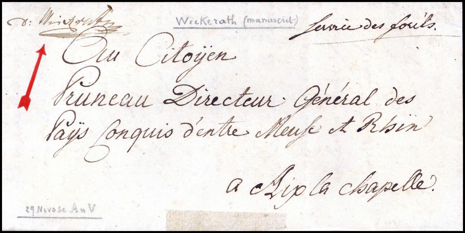 "Wickrath", 1798, hs. Aufgabe "D: Wickrath" auf Brief nach Aachen (unten Klebestelle)