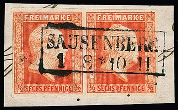 1/2 Sgr. ziegelrot im waager. Kabinettpaar auf Briefstück mit vollem Ra2 "Sausenberg"