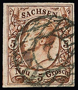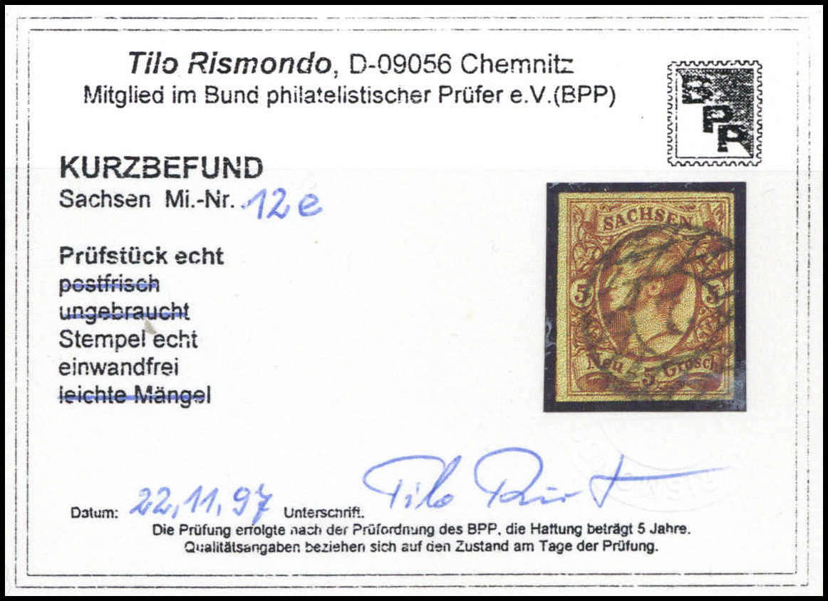 5 Ngr. rostbraun, breitrandiges Luxusstück mit klarem NS "2", Fotoexp. Rismondo. Mi. 220,- +