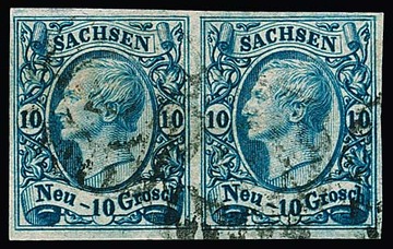 10 Ngr. milchblau, Kabinettpaar mit NS "2", kleine helle Stelle nur im Überrand kein Mangel, sign. Drahn und Attest Vaatz "einwandfrei". Mi. 1000,-