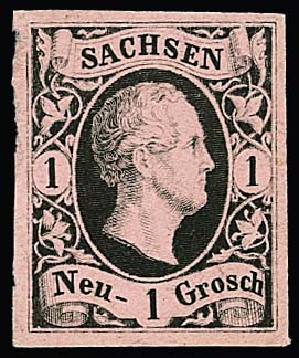 1 Ngr. schw./rosa, breitrandiger Probedruck auf Kartonpapier, sign. Rismondo