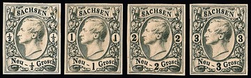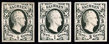 1/2, 1 und 3 Ngr., drei breitrandige Probedrucke auf weißem Kartonpapier. Mi. 750,-