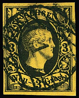 3 Ngr. schw./gelb, allseits breitrandiges Luxusstück mit zentr. NS "1"