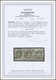 3 Pfge. bläulich- bzw. saftiggrün, fünf Werte (zwei gest., drei ungebraucht) der späteren Auflagen, alle mit genau beschriebenen Druckbesonderheiten ("SACK", "gebrochenes Wertschild" etc.), dazu ein Bfst. der 1. Auflage