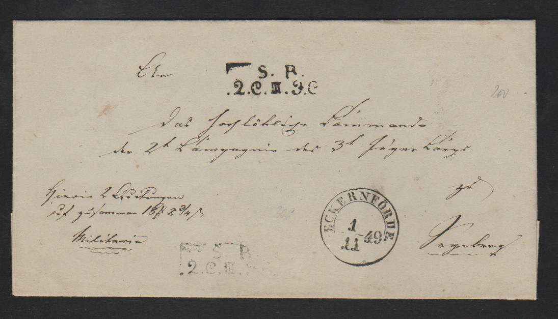 "Eckernförde", 1849, 1.11., K2 nebst Truppenstempel auf Militärbrief nach Segeberg