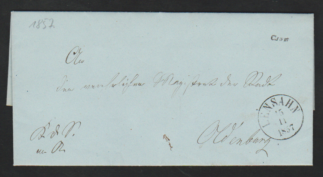 "Cismar", 1857, kleiner Briefsammlungs-L1, nebst K1 "Lensahn", auf Brief mit Inhalt