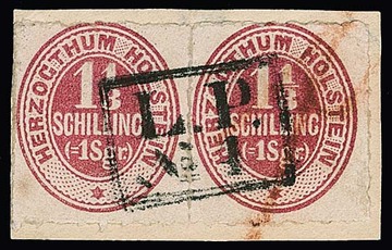 1 1/3 Sch. rotkarmin im Paar auf Prachtbriefstück mit seltenem Landpost-Ra2 "L.P. No. 4" von Kaltenkirchen, sowie rechte Marke Rötelstrich, sign. Decker