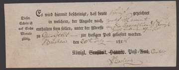 "Büchen", 1818, hs. auf Postschein, Vordruck "königl. Großbrit. hannov. Post-Amt" in "königl. Post-Comtoir" geändert, ferner Ortsdruck-Postschein 1831 ("königlich Dännemarkisches Post-Comtoir"), sowie Ra1 ("nachgetupft") auf Brief 1852