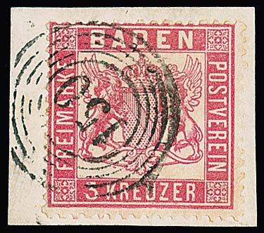 3 Kr. rosa auf Kabinettbriefstück mit klarem NS "150" (Waghäusel), sign. Krause. Mi. 350,-