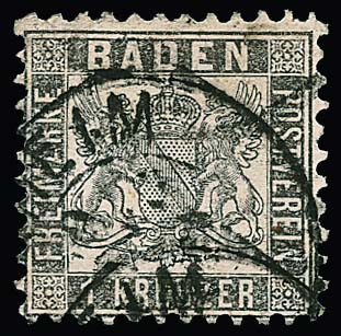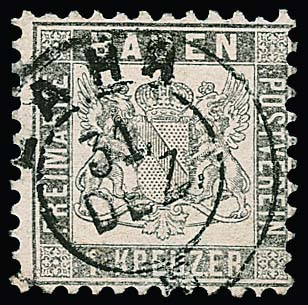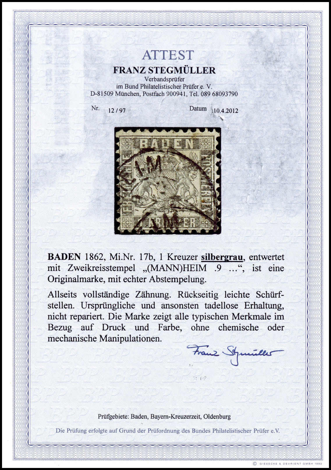 1 Kr. silbergrau, perfekt gezähntes Exemplar mit K2 "Mannheim", rs. etwas aufgerauht, sonst in tadelloser Erhaltung. Fotoattest Stegmüller. Mi. 3000,-
