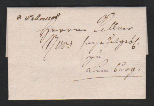 "Wallmerod", 1794, "D Wallmerod" hs. auf kleinem Luxusbrief von Molsberg nach Limburg
