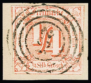 1/4 Sgr. rotorange, riesenrandig, drei Seiten Nebenmarken, auf Luxusbriefstück mit zentr. NS "251", ex Slg. Erivan Haub