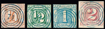 1/4 Sgr. orangerot bis 2 Sgr. rot (Bfst.), alle vier verschiedenen Werte einheitlich mit blauem NS "71" von Steinbach-Hallenberg