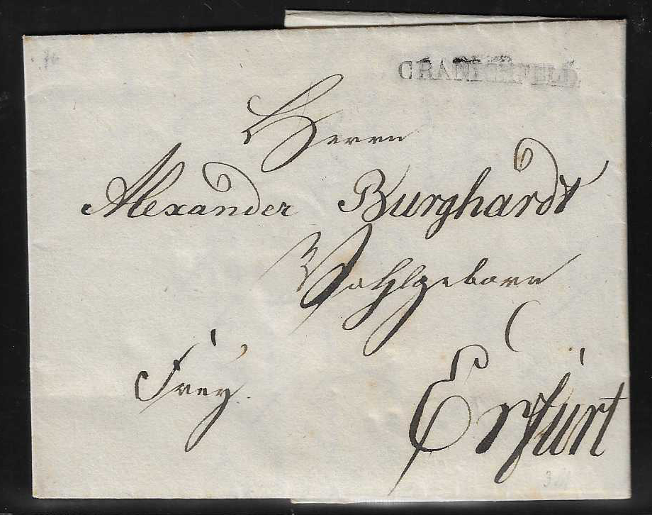 "Cranichfeld", 1830, seltener erster L1 (aptierter Rayon-Stempel) auf Brief mit Inhalt nach Erfurt