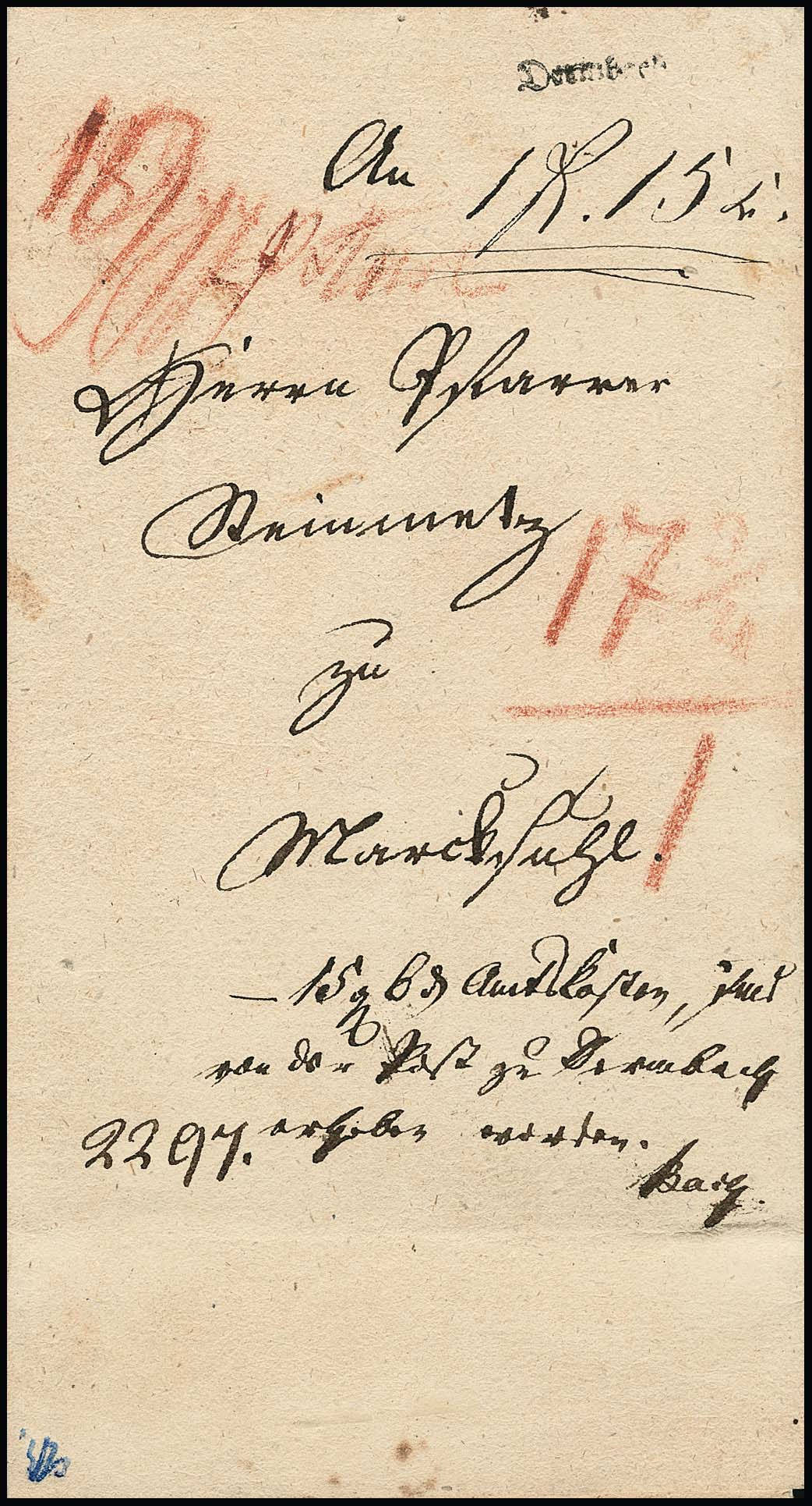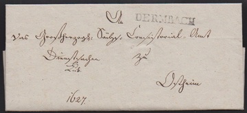 "Dermbach", (1830), der sehr seltene, nur in wenigen Exemplaren bekannte kleine Fraktur-L1 klar auf Postvorschußbrief