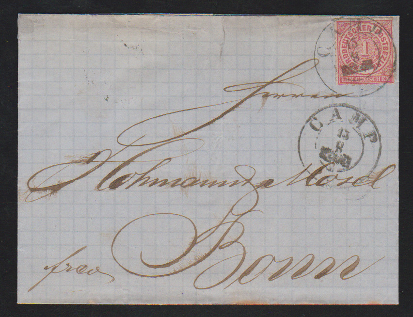"Camp", nachverw. K2 klar auf Brief NDP 1 Gr. (kl. Mgl., u.a. Briefpapier oben kl. Einriß)