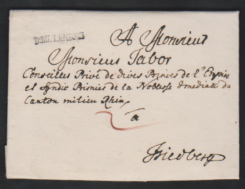 "Dillenburg", 1777, L1 "D:DILLENBURG" klar auf austaxiertem Luxusbrief nach Friedberg