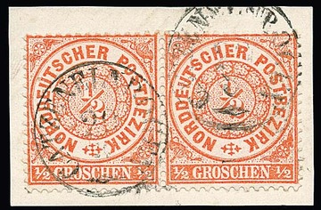 "Catzenelnbogen", nachverw. K1 auf Kabinettbriefstück mit waager. Paar NDP 1/2 Gr.