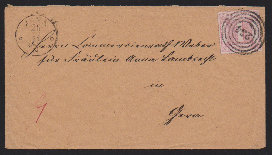 1 Sgr. rosa auf beigem Prachtcouvert von Jena nach Gera, Mi. 150,-