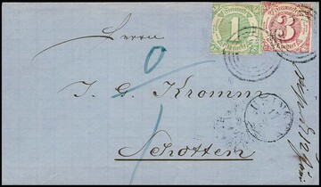 "211", typischer Abschlag, nebst K1 "Usingen" auf Faltbrief (ohne Seitenklappen) mit 1 und 3 Kr., Feuser + 500,-