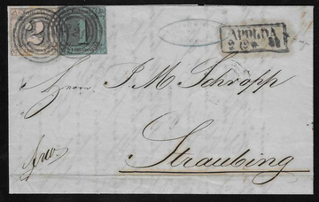 "221" nebst Ra2 "Apolda" auf Postvereinsbrief (leichte Gebrauchsspuren) mit 1 und 2 Sgr. nach Straubing in Bayern