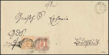 "211" zart, nebst Silvester-K1 "Usingen", auf Ganzsache 3 Kr. (rs. ein Siegel entfernt). Feuser + 500,-