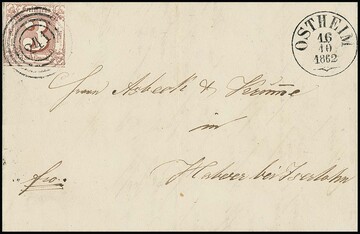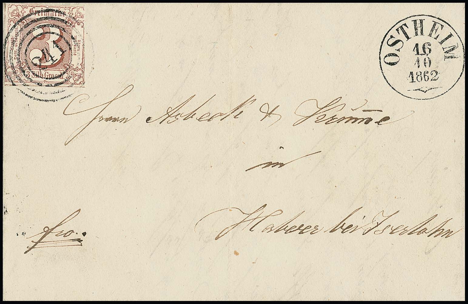 "241" nebst K1 "Ostheim" je sehr klar auf Postvereinsbrief mit 3 Sgr. rotbraun 1862