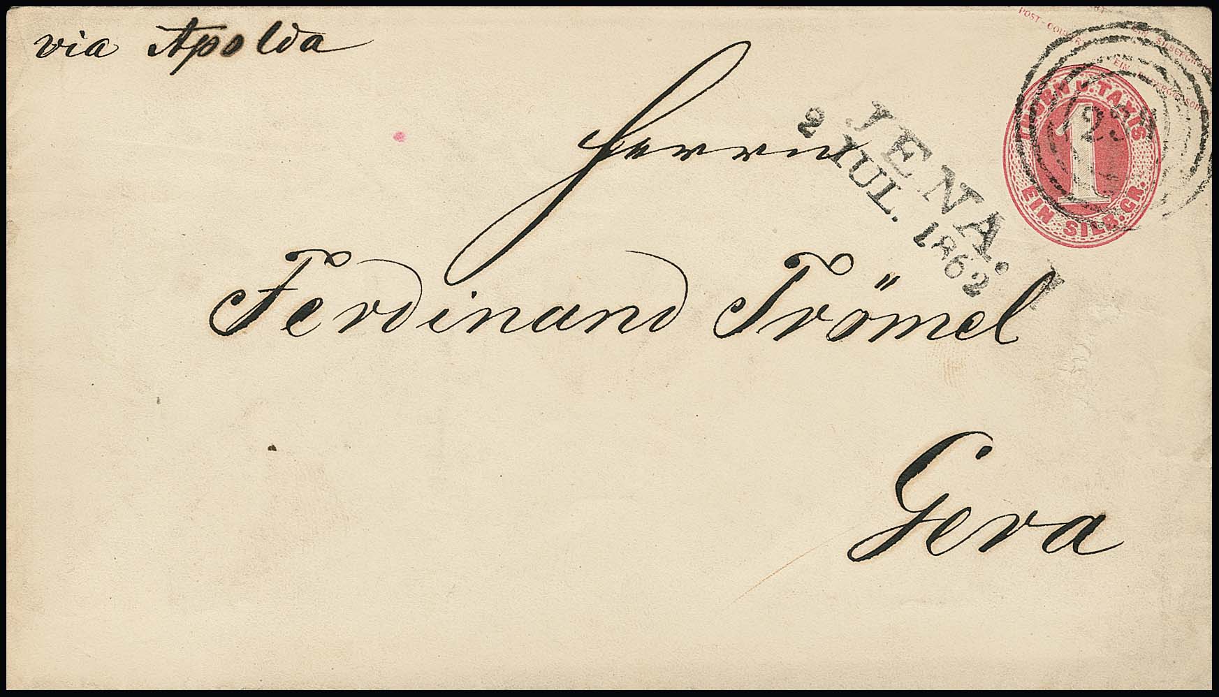 "234" nebst L2 "Jena" auf Postvereinsbrief mit erste Ausgabe 3 Sgr. für ein Muster-Paket nach Lohne 1860, sowie auf Ganzsache 1 Sgr.