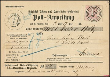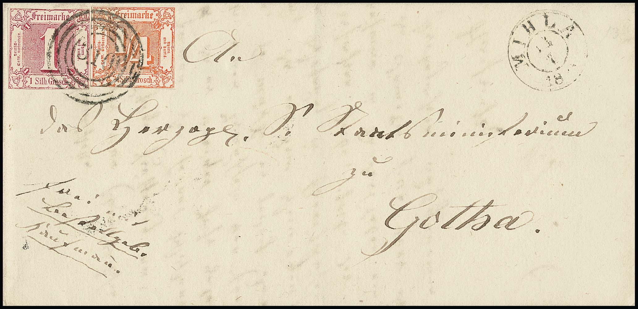 "310" nebst K2 "Mihla" klar auf Bestellgeldbrief mit 1/4 und 1 Sgr.
