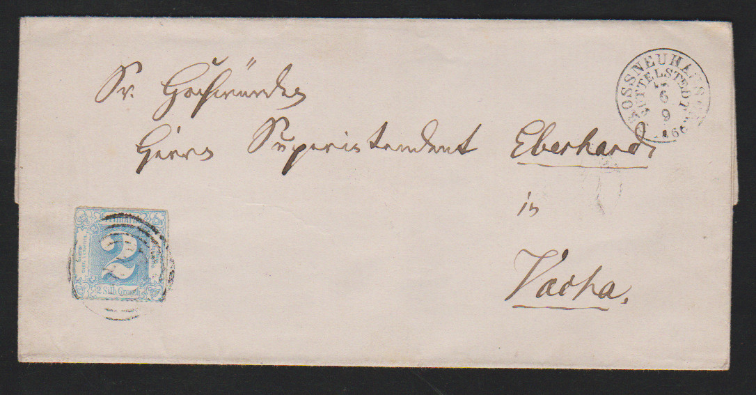 "309", zarter NS, nebst K1 "Grossneuhausen bei Buttelstedt", auf Brief 2 Sgr.