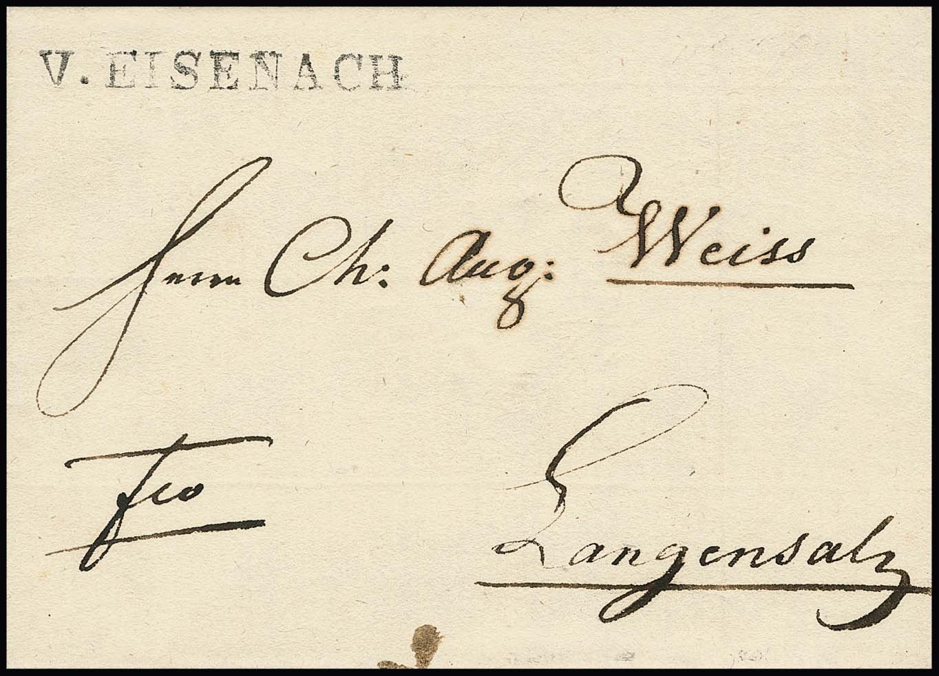 "Eisenach", 1798, L1 "V. EISENACH" auf Kabinettbrief mit Inhalt nach Langensalza, Feuser 838-4/150,-
