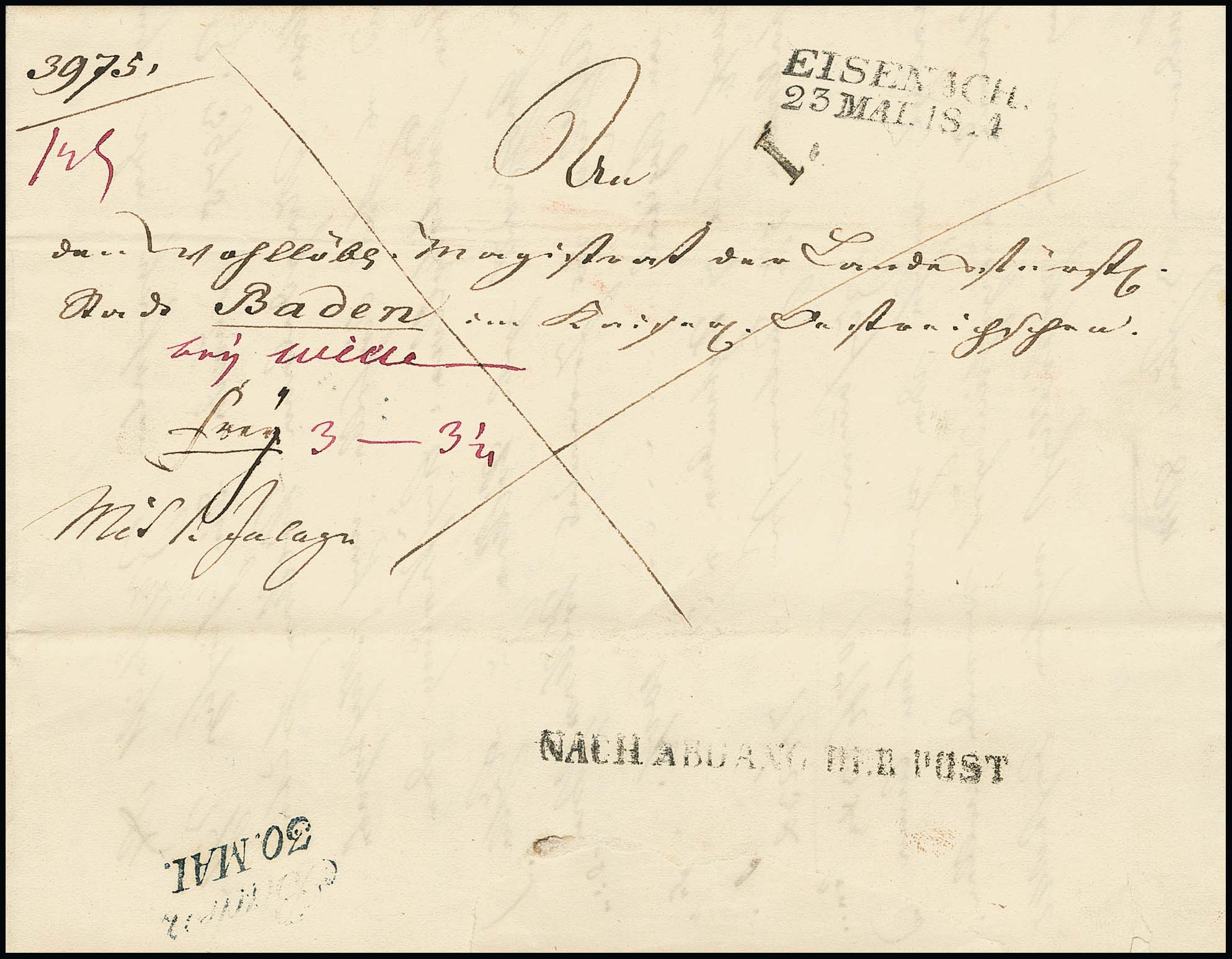 "Eisenach", 1814, L1 "R.3. EISENACH" auf Militaria-Brief, sowie auf Postvorschuß-Hülle