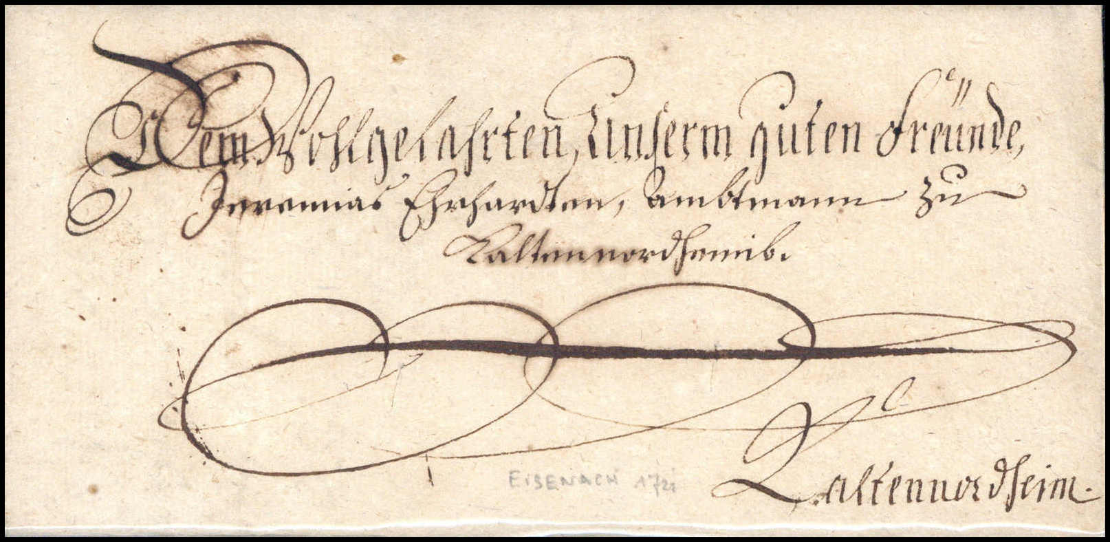 "Eisenach", 1721, Kabinett-Schnörkelbrief mit prachtvollem Trockensiegel