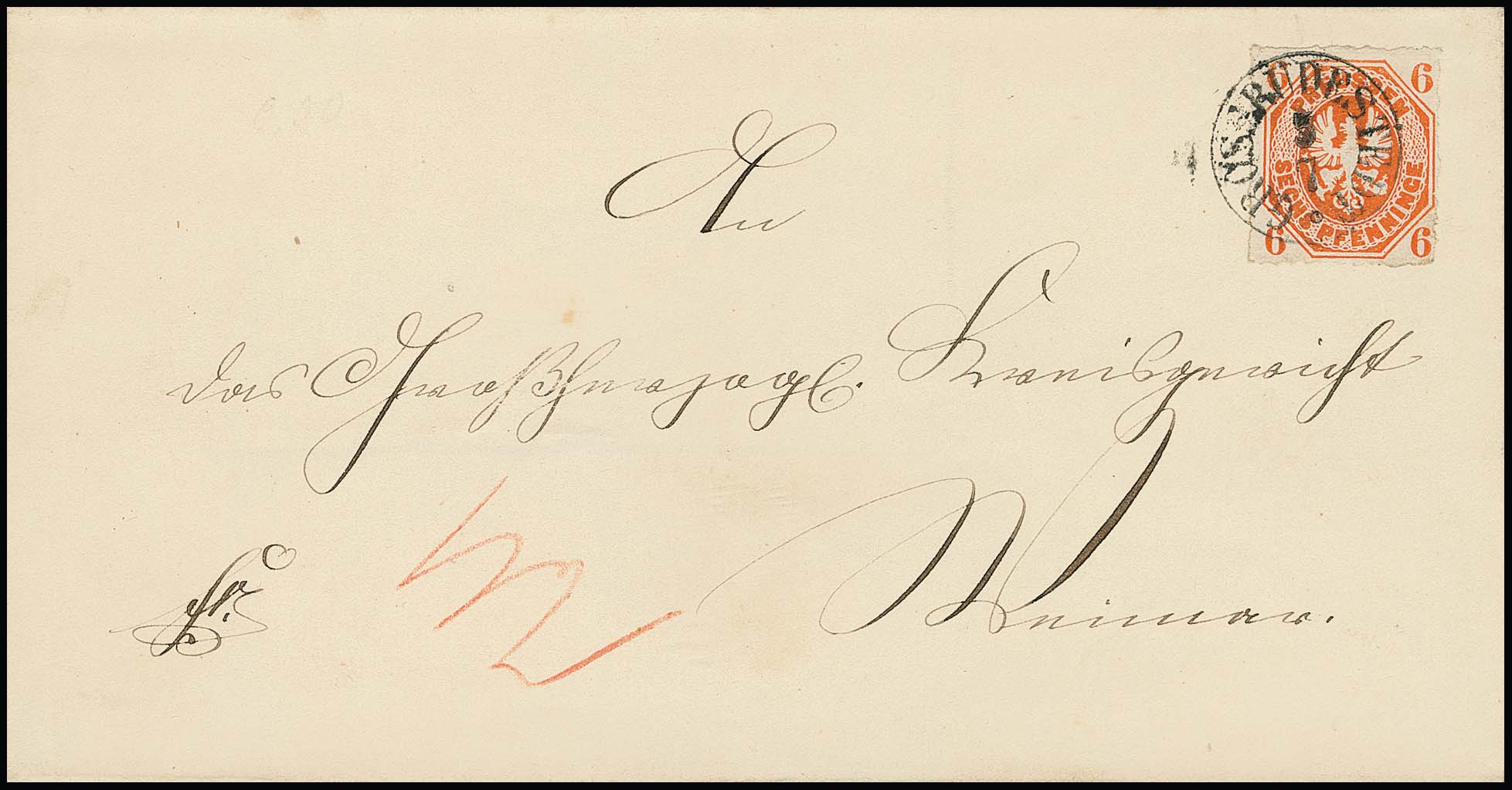 "Grossrudestedt", klarer nachverw. K1 auf Brief (ohne Seitenklappen) mit besserer Einzelfrankatur Kabinettstück Preußen 6 Pfge. orange im Nahbereich nach Weimar