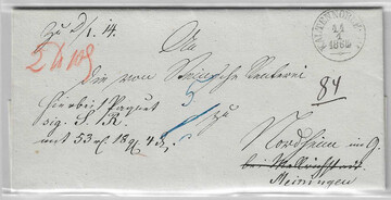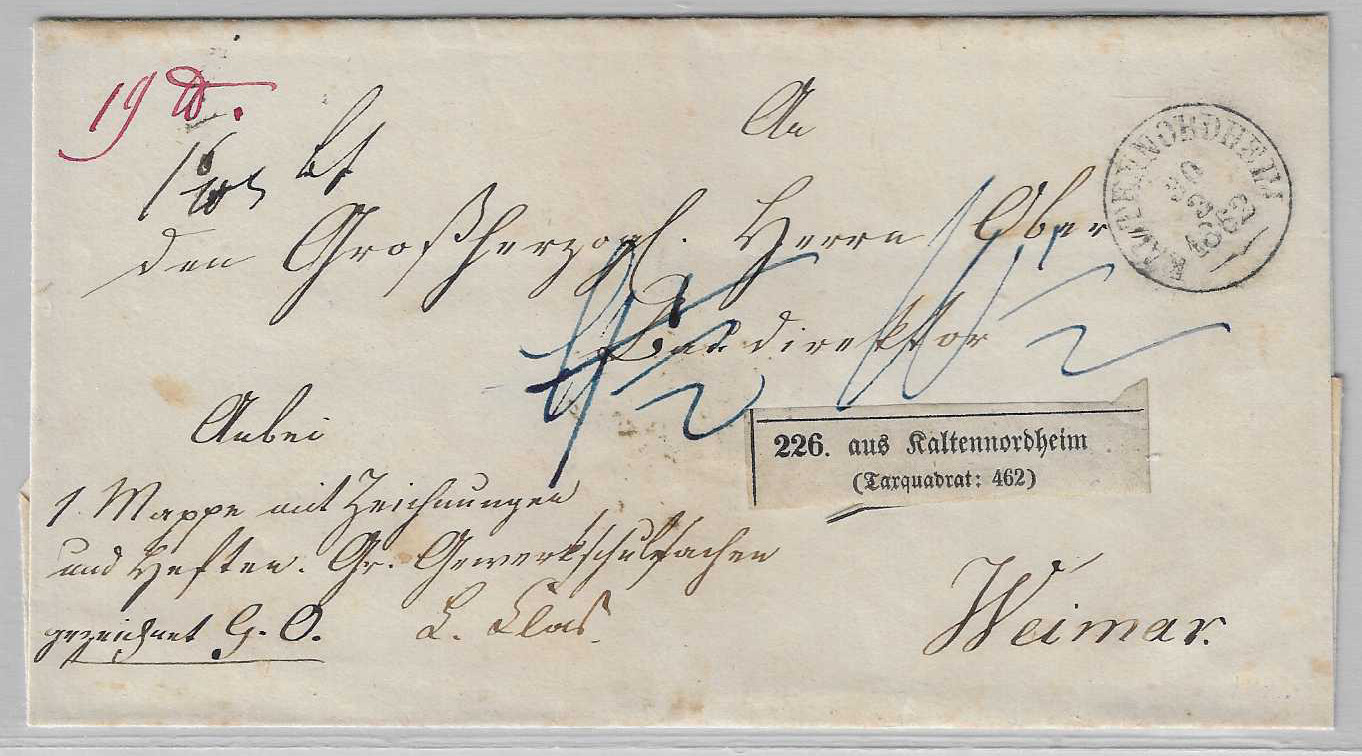"Kaltennordheim", 1862/64, K1 auf zwei Paketbegleitbriefen, einer mit Landbestellung