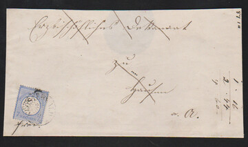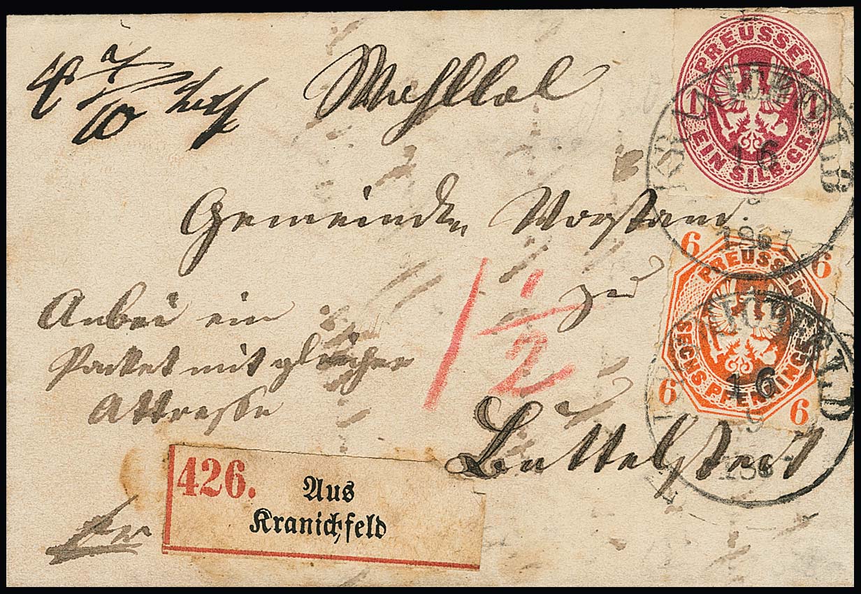 "Kranichfeld", nachverw. K1 klar auf Paketbegleitbrief mit Preußen 6 Pfge. und 1 Sgr., 16.9.1867, kleine Fleckchen