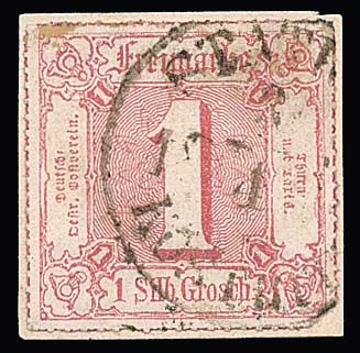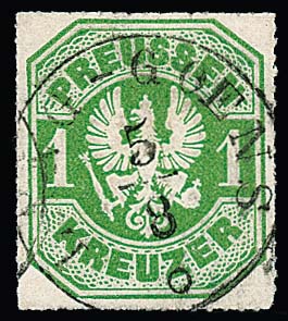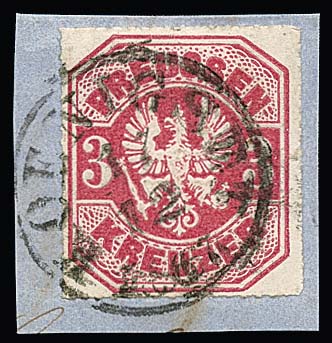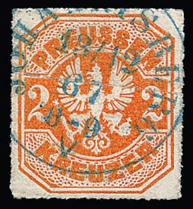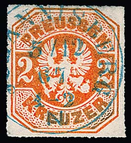 "Johannisberg", zentrischer seltener nachverwendeter K1 in blau auf Preußen 2 Kr., sign. Kastaun