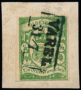 5 Pfg. lila zusammen mit 10 Pfg. rosa auf seltenem Instruktionsbogen, etwas verkürzt und typische Vorfaltspuren, Mi. 1800,-