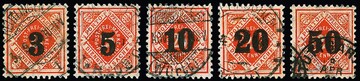 Fünf gute Serien, je gest., geprüft: Nr. 107-11, 123-29, 144-49, 201-7 und 241-50. Mi. 790,-