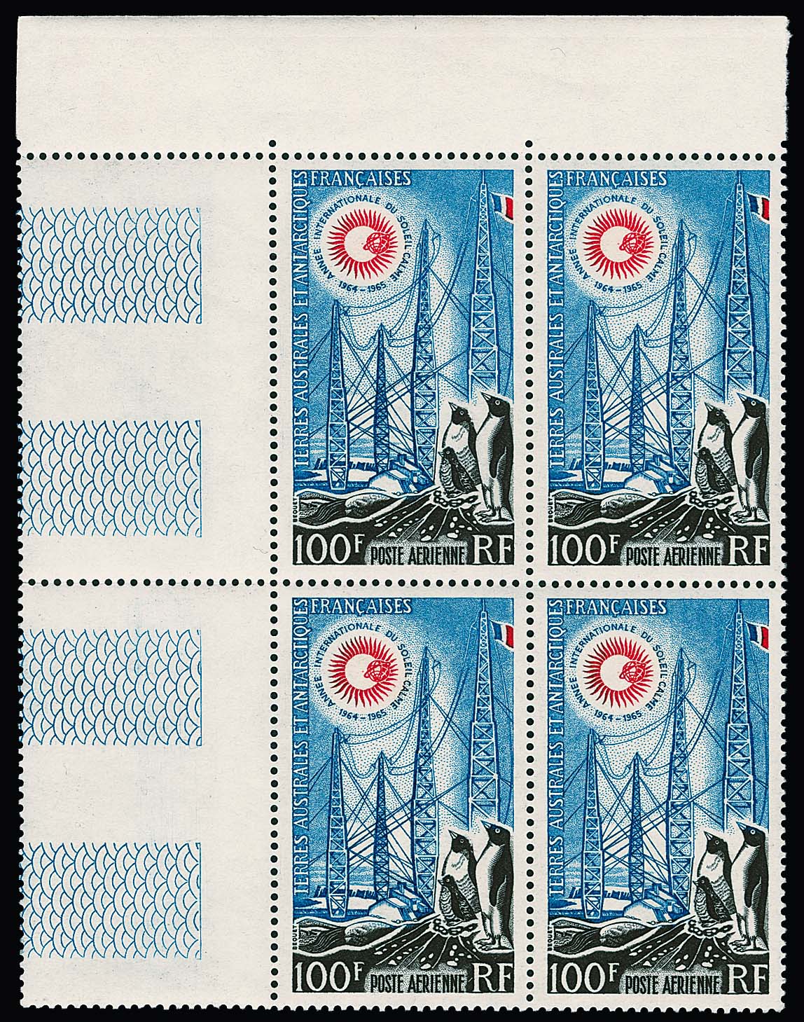 Antarktis, Französisch, TAAF, 1963, Astronomie in postfrischen Eckrand-Viererblöcken, Mi. 800,-