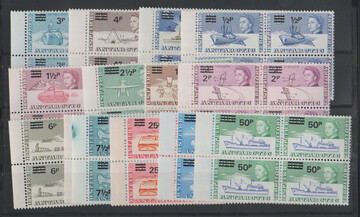 Antarktis, Britisch, BAT, 1971, Aufdrucke in postfrischen Viererblöcken, Mi. über 700,-