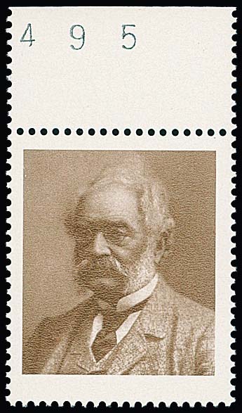 100 Pfg. Werner v. Siemens, postfrisches Oberrandstück mit Abart "sämtliche Inschriften und Wertziffer fehlend", Mi. 150,-