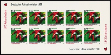 110 Pfg. Kaiserslautern, Deutscher Fußballmeister, Abart "ungezähnt" im vollständigen postfrischen Zehnerbogen, Michel nicht gelistet!
