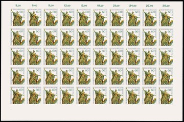 60 Pfg. Quirin Asam, Abart "ungezähnt" im vollständigen postfrischen Bogen (Form-Nr. "1"), Mi. lose 2500,- +