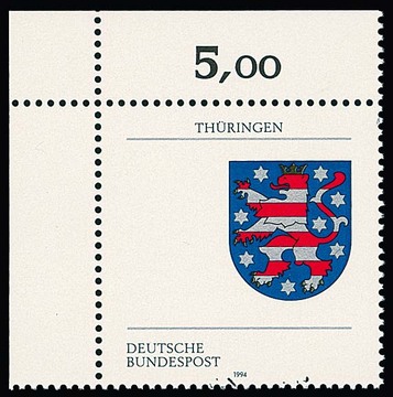 100 Pfg. Thüringen, Abart "Wertziffer und Karte fehlen" als tadellos postfrische linke obere Bogenecke, Attest Schlegel. Mi. 400,-