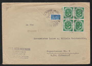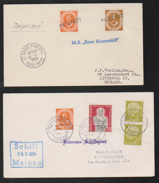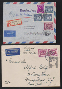 6 Pfg. Posthorn, sieben Belege inkl. Postkriegs-MiF nach Dresden mit Schwärzung, sowie zwei Schiffspostbriefen, ferner sechs EF 8 Pfg. Posthorn, sowie acht MiF (u.a. Karte 8 Pfg. mit Nr. 141), gesamt 21 Belege