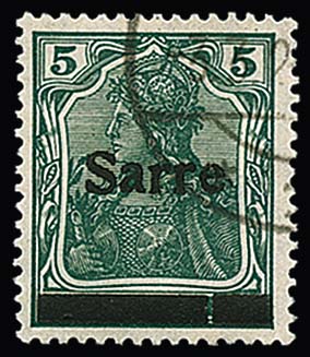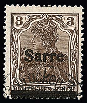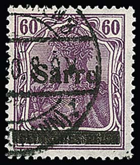 60 Pfg. rotlila, Aufdrucktype I mit Aufdruckabart "e von Sarre oben offen" tadellos gestempelt. Mi. 2000,-