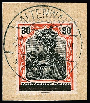 30 Pfg. auf orangeweiß, Type III auf Luxusbriefstück mit zentr. Stempel "Altenwald", Attest Burger. Mi. 600,- +