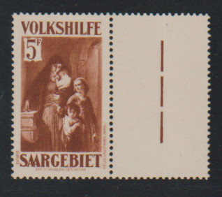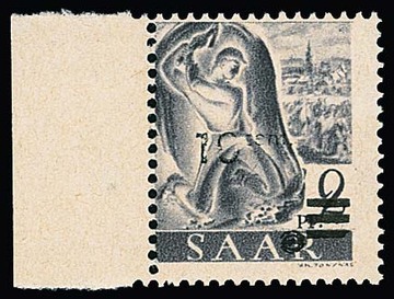 2 Pfg. "Sarre", Aufdruckabart "geteilter Balken" als postfrisches Unterrandstück, sign. Dub (dopp.), Mi. 550,-