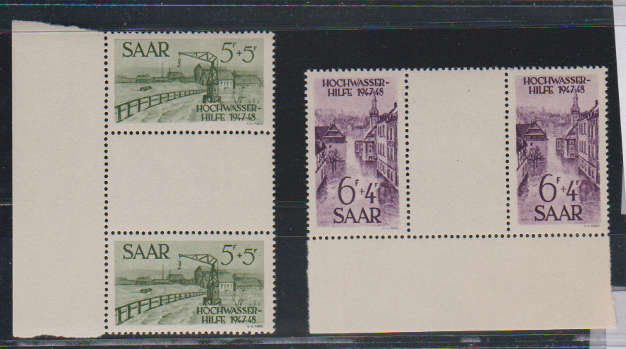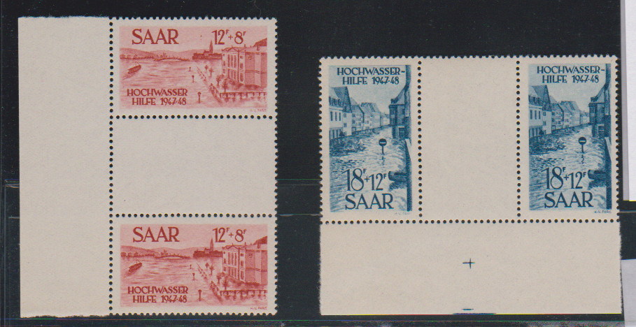 Hochwasserhilfe in postfrischen Zwischenstegpaaren, dabei Plattenfehler 259III
